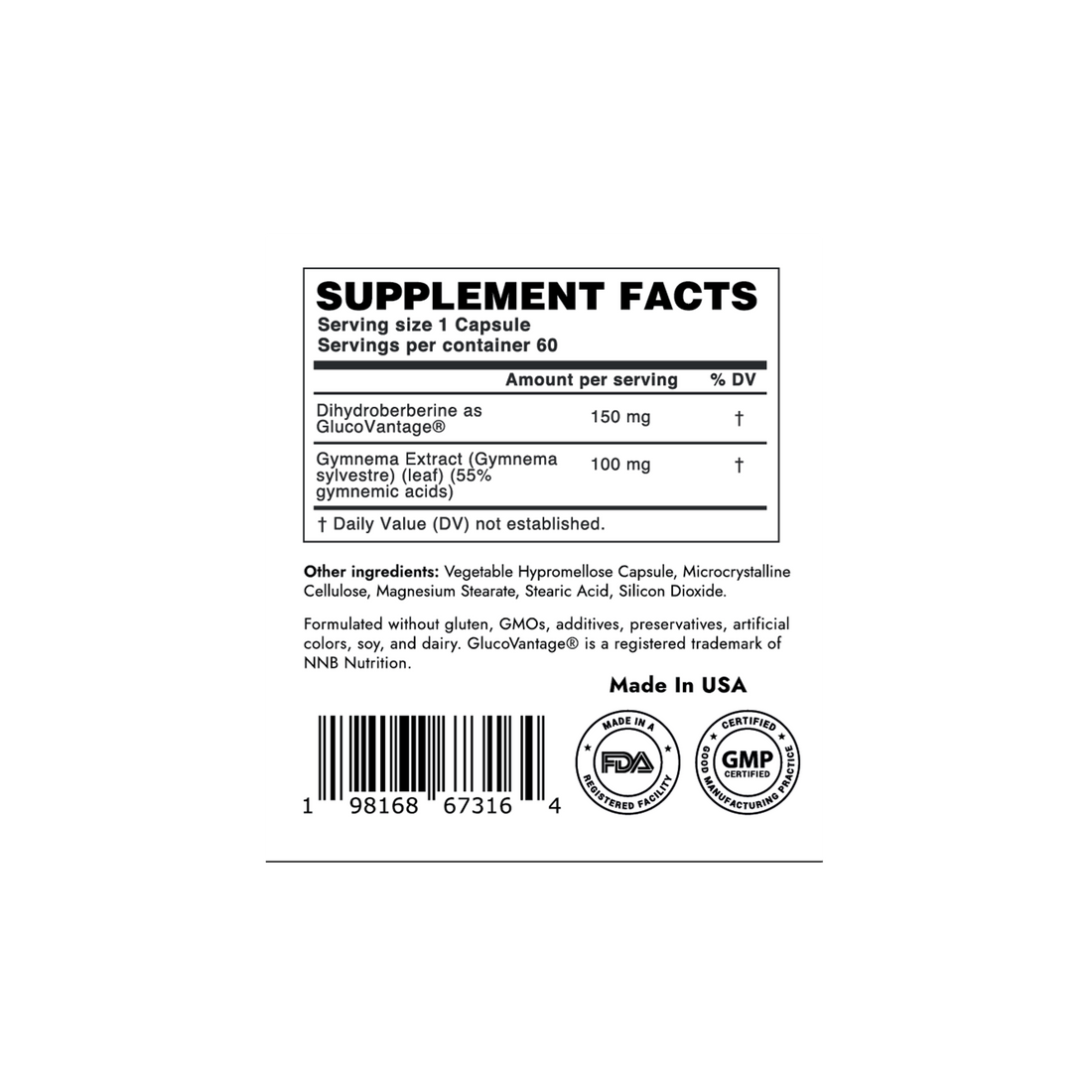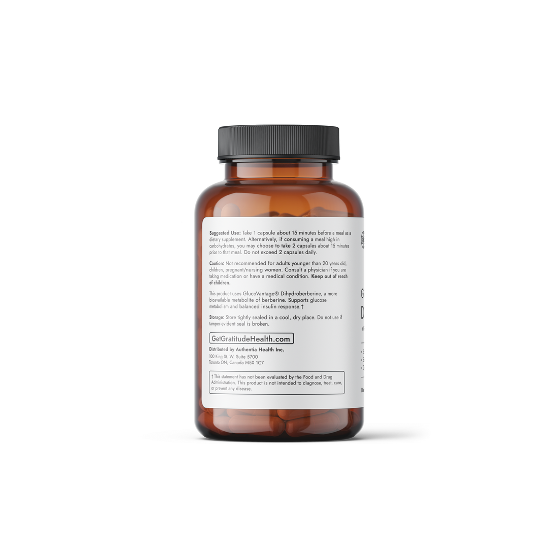 DihydroBerberine is a metabolite of berberine, demonstrated to have greater bioavailability and longer-lasting effects in the body. Gymnema Sylvestre has been studied for its ability to support post-meal blood sugar regulation and reduce cravings through its interaction with glucose receptors. For more details.