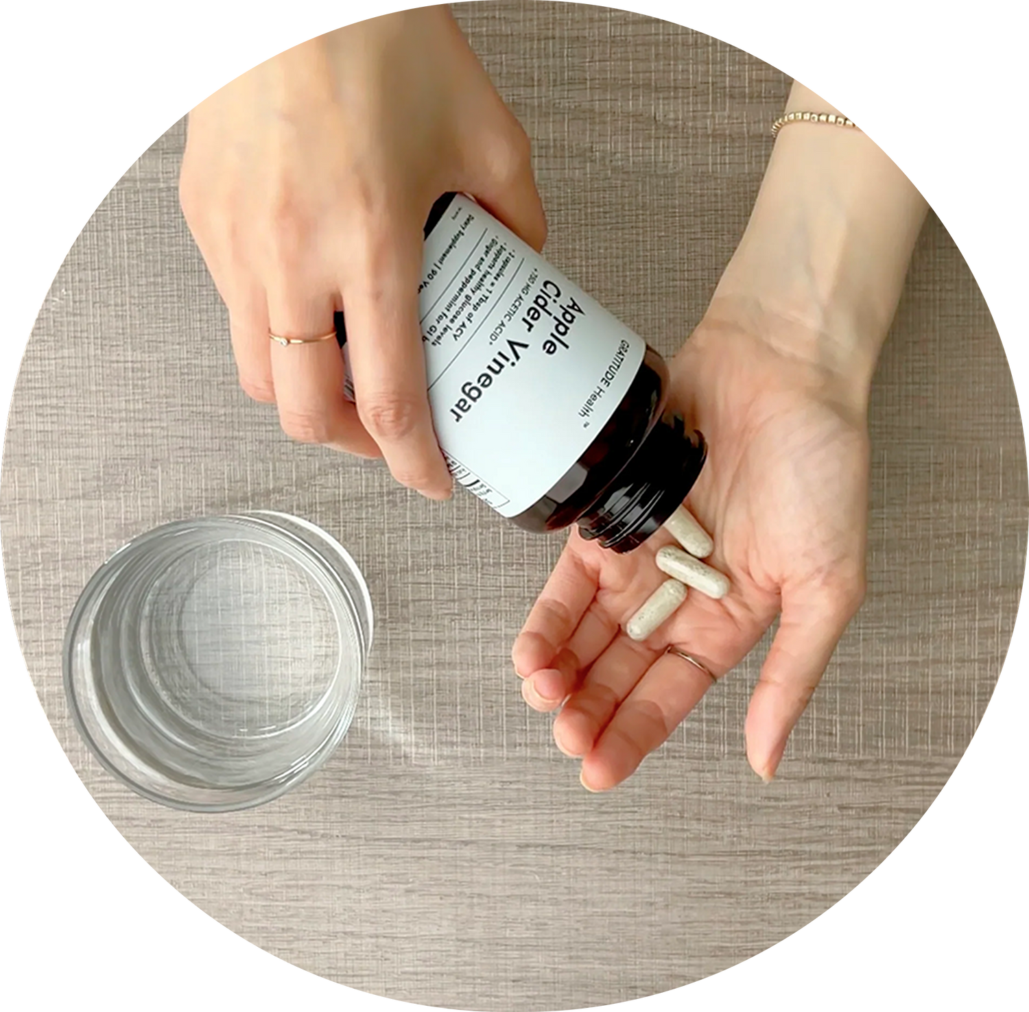 Our custom formula includes a blend of beneficial nutrients and natural compounds derived from Apple Cider Vinegar (ACV), offered in easy-to-take capsules.This capsule format delivers all the benefits of ACV without the sour taste or concerns for tooth enamel.